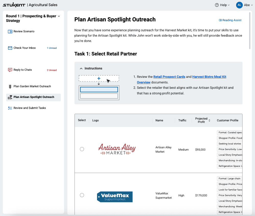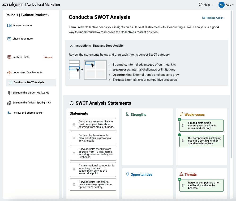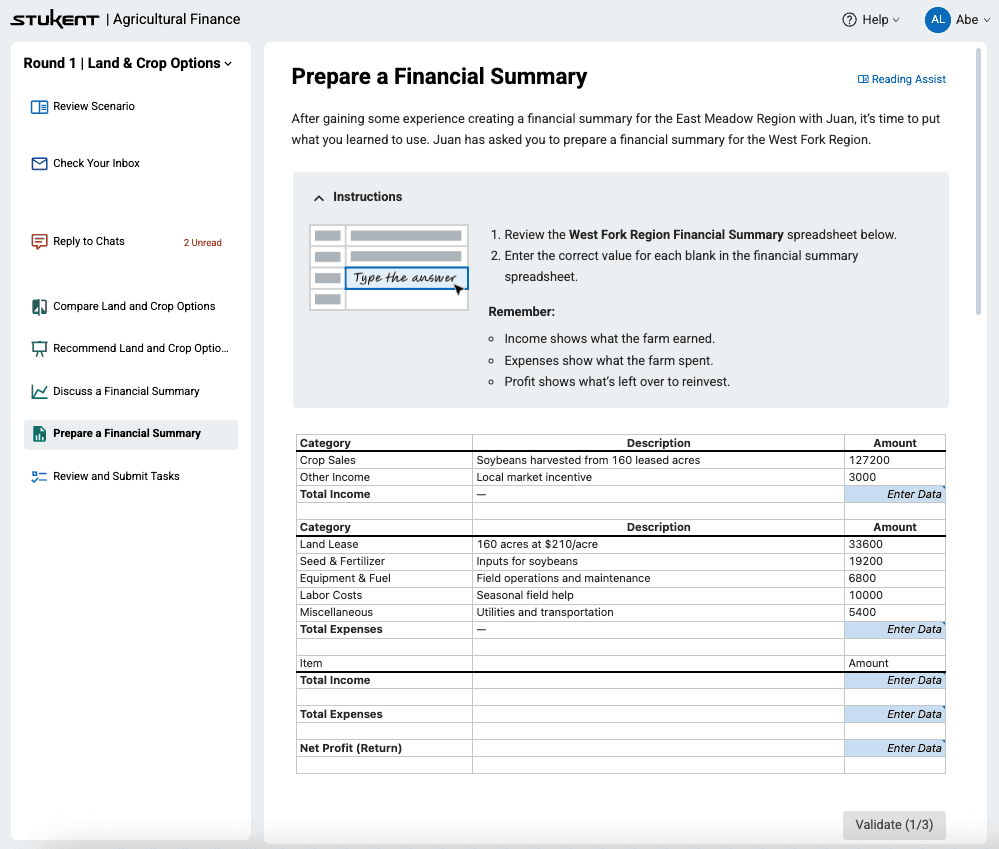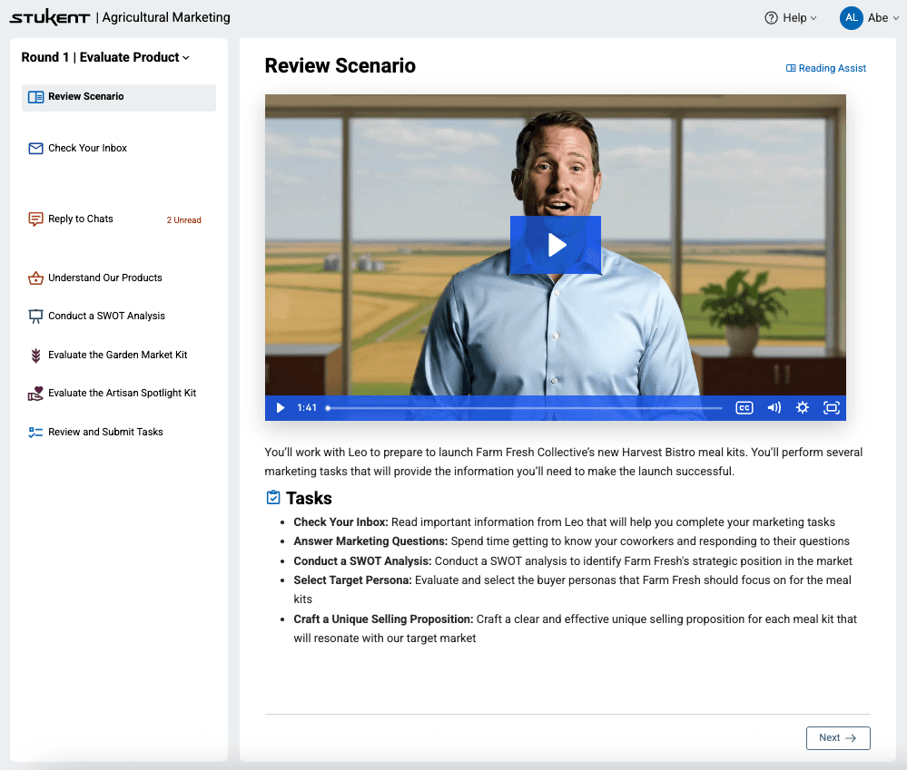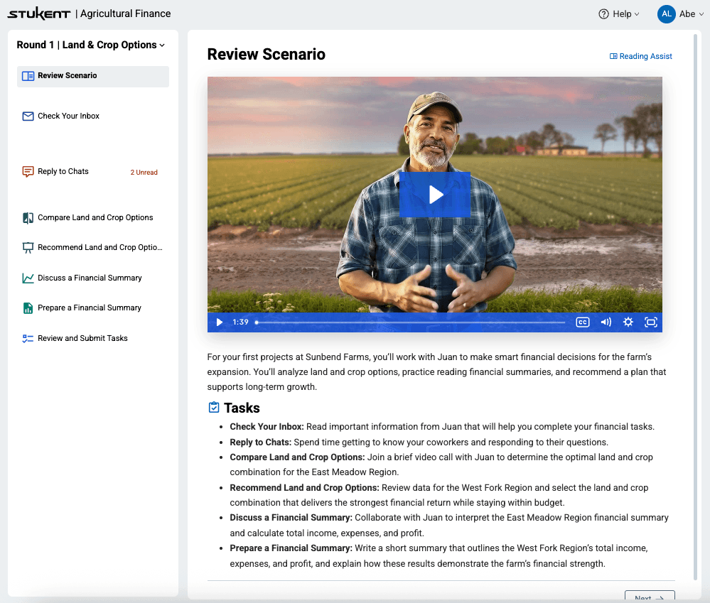 These Simternships offer students three simulated workplace scenarios based on different agricultural careers. They can complete one or all three for a broader agribusiness experience.