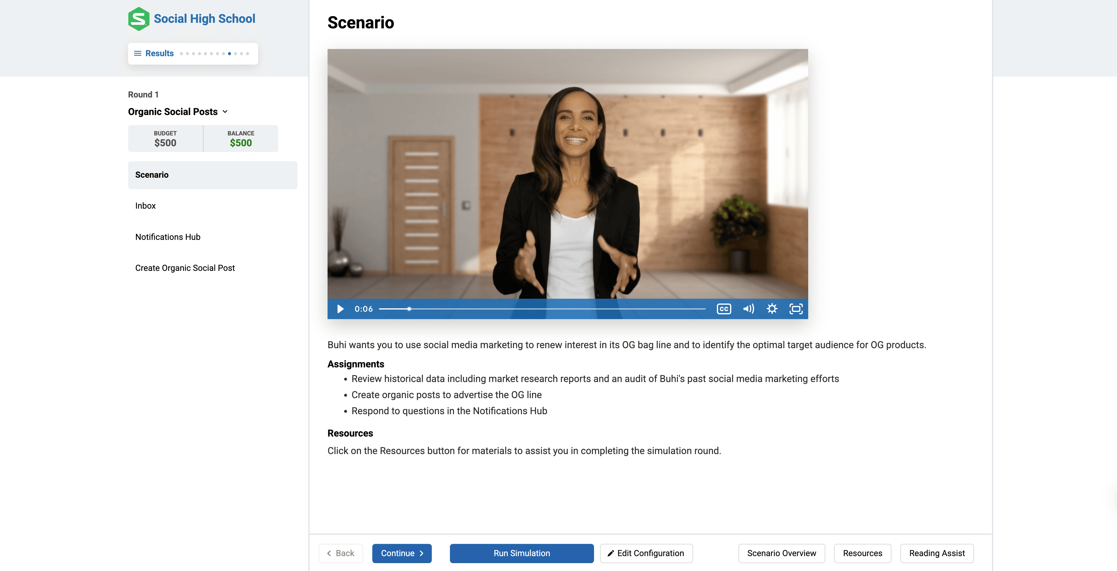 The Social Media Marketing Simternship asks your students to assume the role of social media specialist for a simulated e-commerce company. Over the course of 9 rounds, your students will run paid ad campaigns, perform demographic targeting, test social media content, analyze performance metrics, and more.