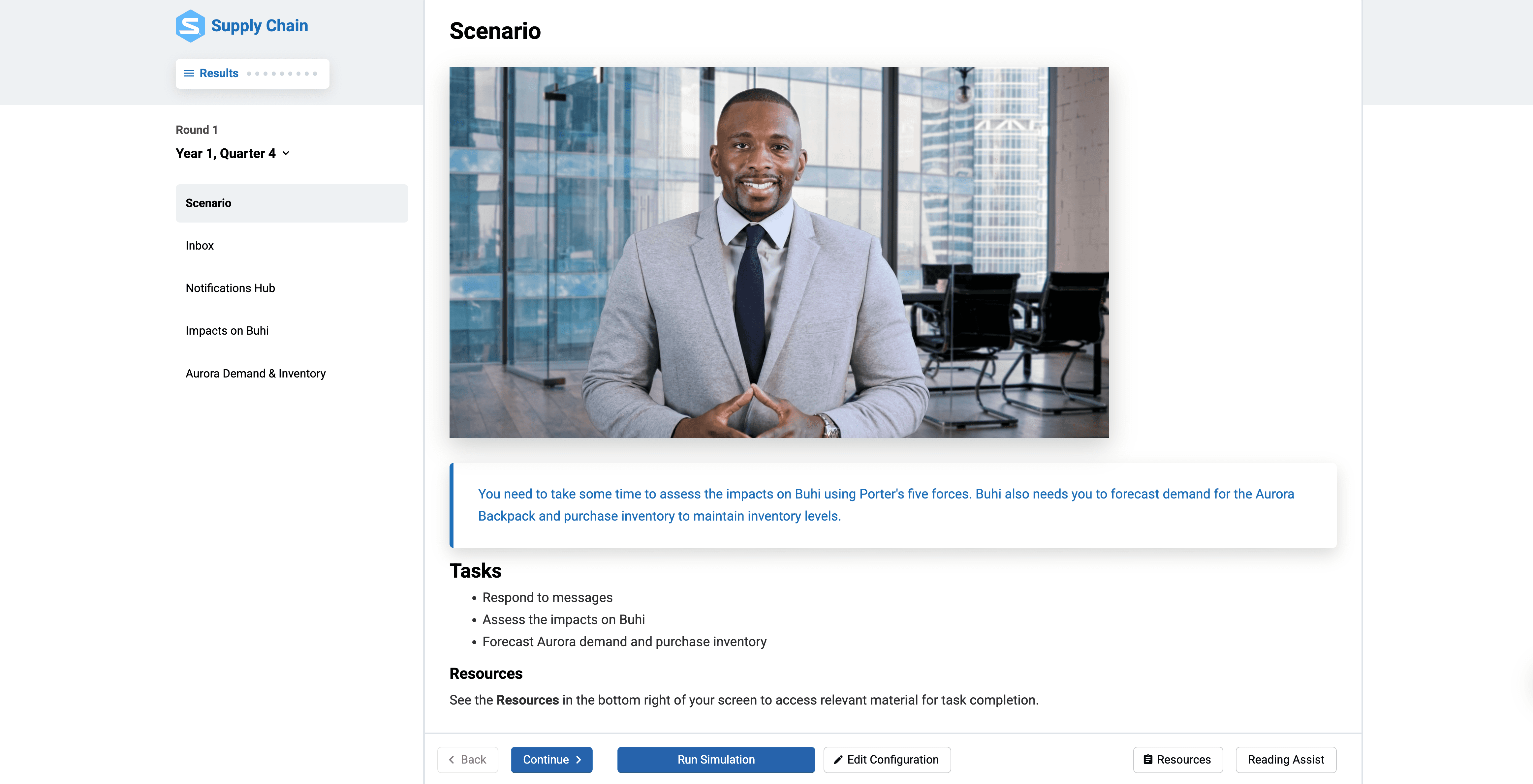 Industry runs on the strength of its supply chains. The Supply Chain Management Simternship asks your students to apply forecasting models to real-world supply chain scenarios, meet demand, optimize inventory levels, select transportation methods and warehouse locations, and perform other vital supply chain tasks.