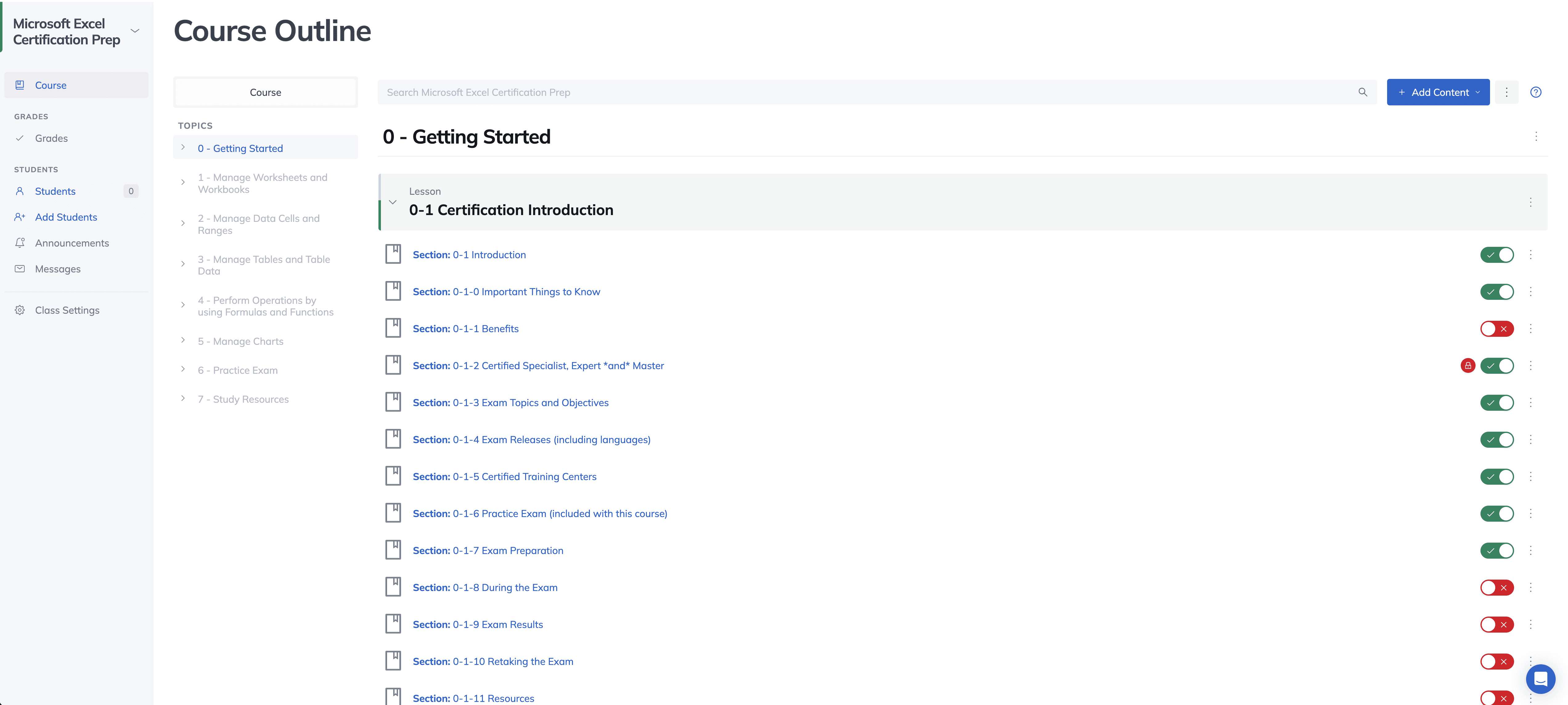 The Excel Certification Prep course equips students with the skills needed to earn their Microsoft Office Specialist certification. Through interactive lessons, video tutorials, quizzes, and guided practice tasks, students will master essential Excel functions and tools.